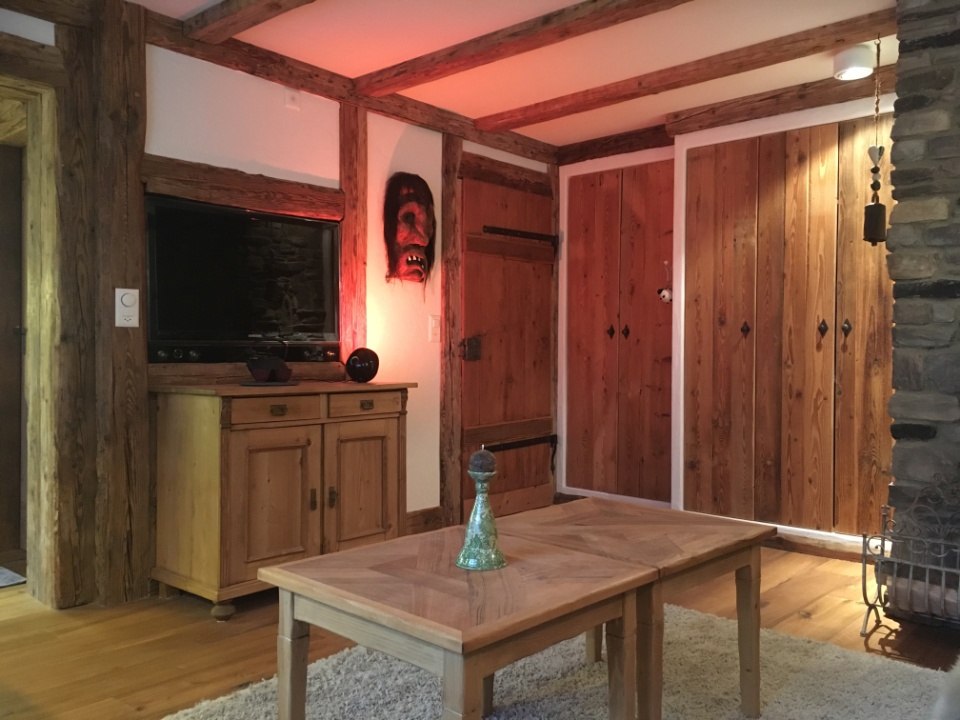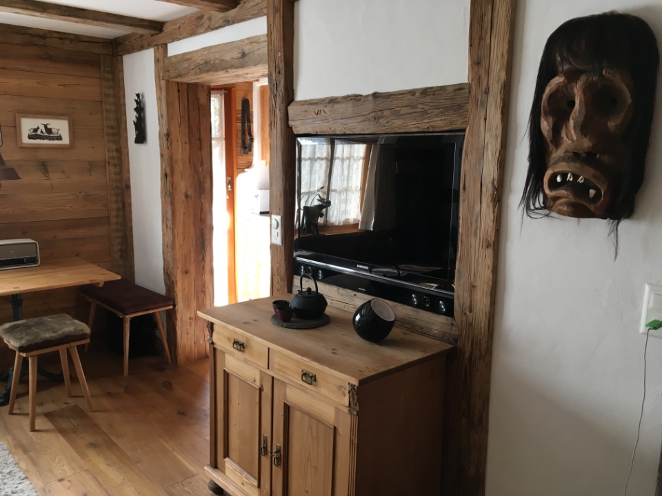Die 1 1/2 Zimmer Wohnung liegt in einem Chalet im alten Ortsteil von Leukerbad. Das Dorfzentrum mit den Thermalbädern sowie die Gemmibahn sind in wenigen Schritten zu Fuss erreichbar; ebenfalls der RingJet Bus, welcher die Torrentbahnen bedient. Die Wohnung wurde in stilvollem Alpenchick renoviert.